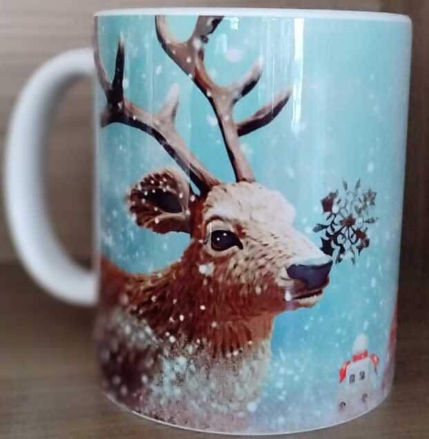 Celebre o espírito natalino todos os dias com esta encantadora caneca de porcelana personalizada, estampada com uma ilustração 3D vibrante de Papai Noel e sua rena em meio a uma delicada nevasca. A arte em alta definição traz profundidade, brilho e um toque mágico, transformando cada gole em uma experiência aconchegante.